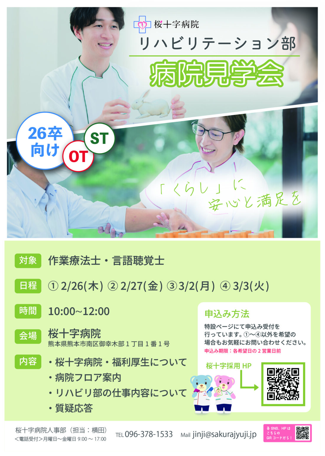 26卒の作業療法士・言語聴覚士を対象に、「病院見学会」を開催します!