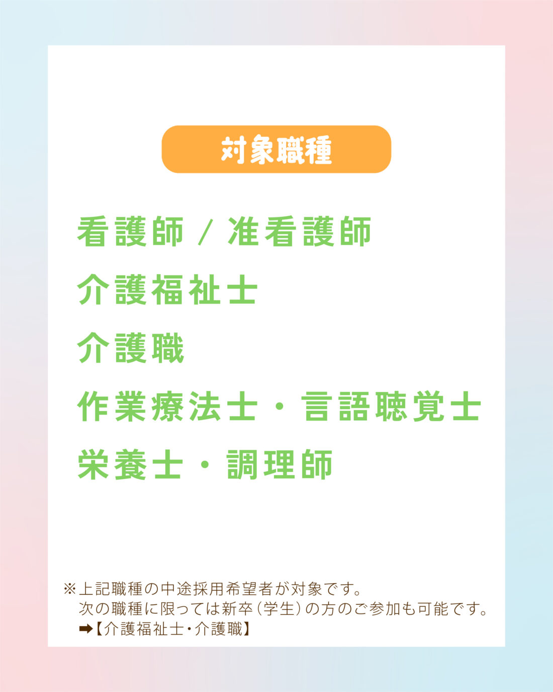 【中途採用】看護師・准看護師・OT・ST・介護福祉士・介護職(未経験可)・栄養士・調理師