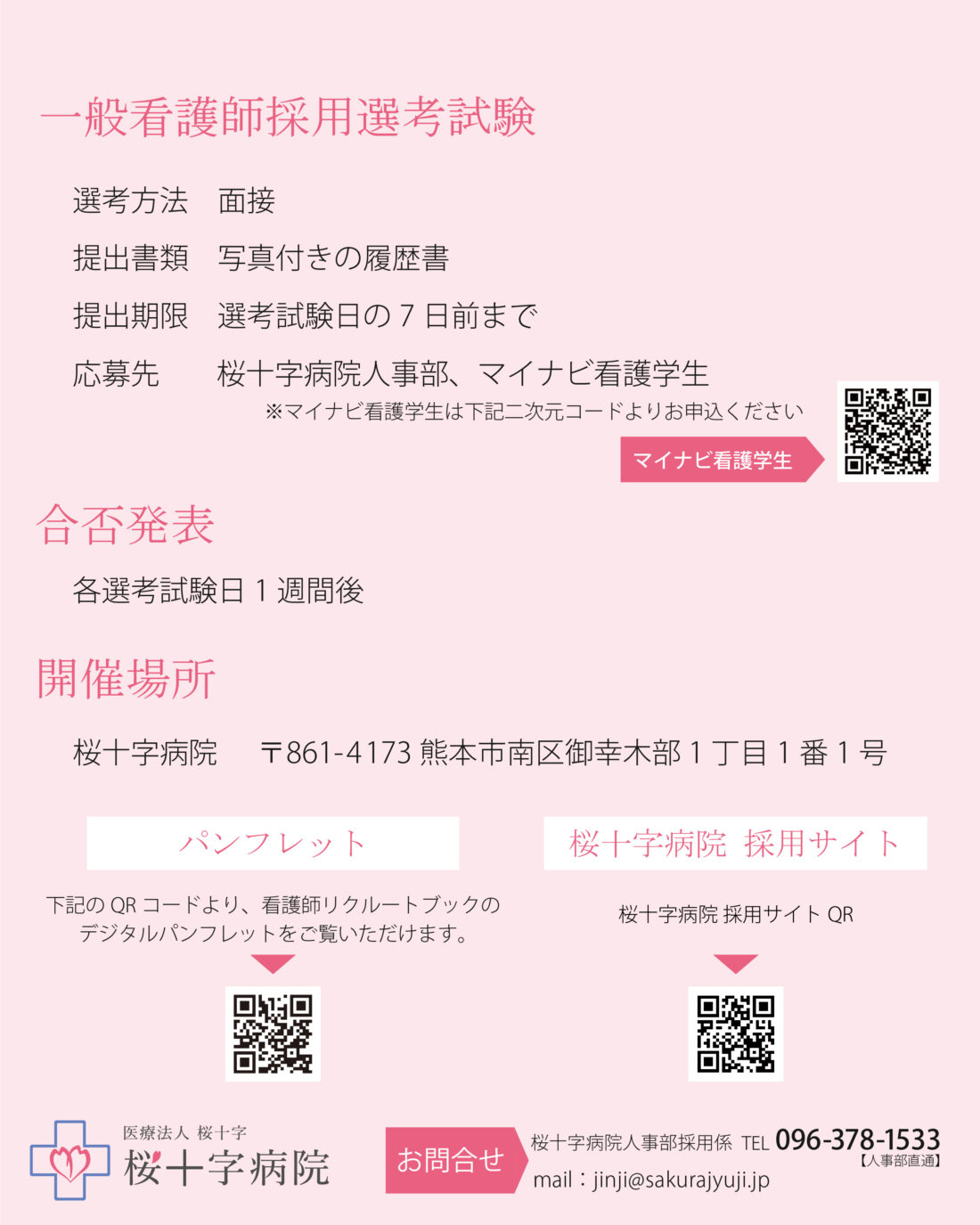 桜十字病院 人事部 新卒採用係 TEL 096-378-1533[人事部直通]