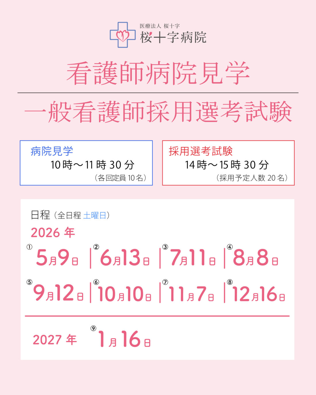 看護師病院見学会・一般看護師採用選考試験のお知らせ